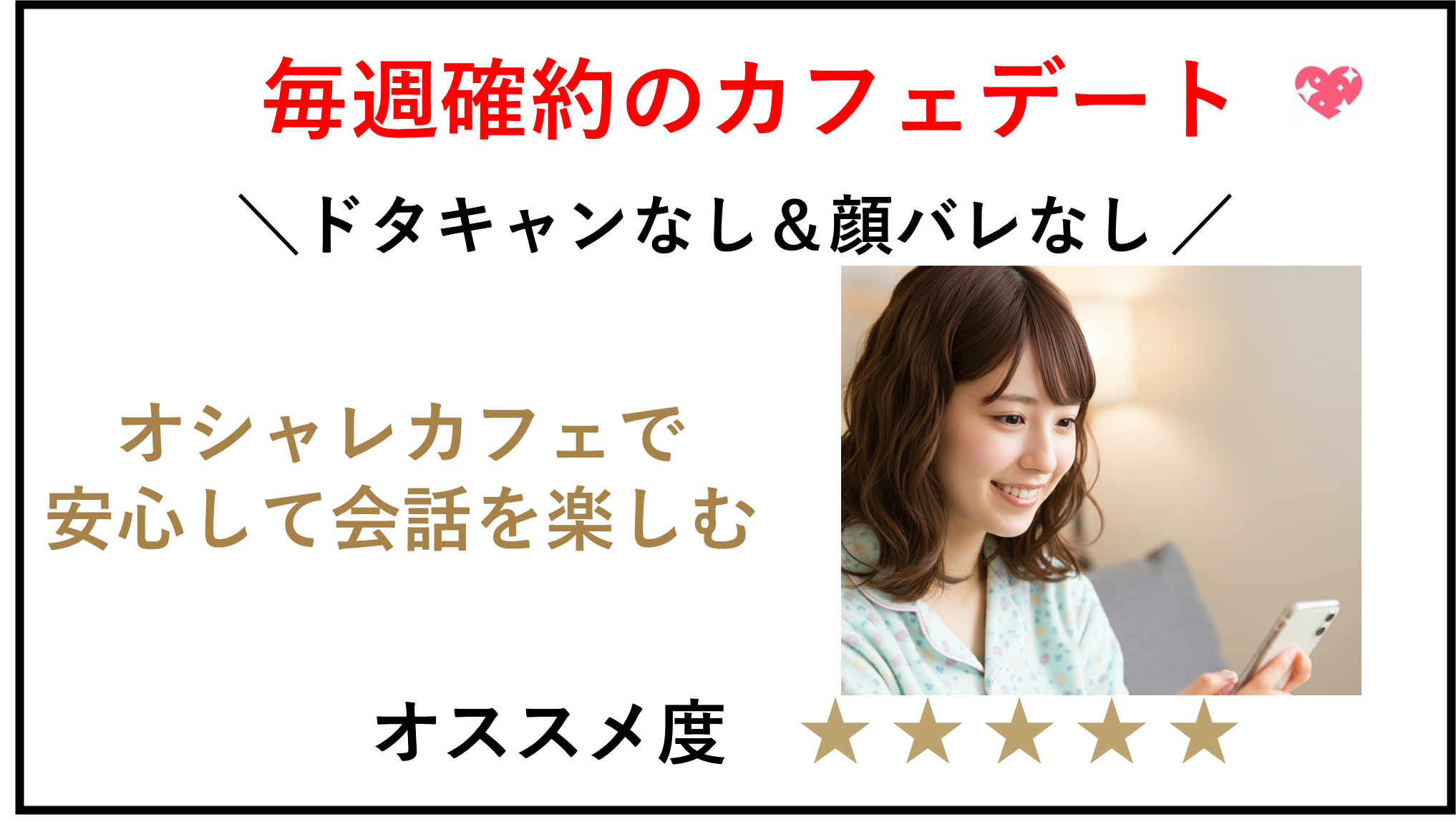 …とはいえ、そもそも そんなに写真にこだわる必要ある? って思うんです。だって、バチェラーデートなら たった1枚の写真でOK! しかも、それで審査に通れば 毎週カフェデート確約! つまり、 月に4人の女性と自然に出会える ってわけです。